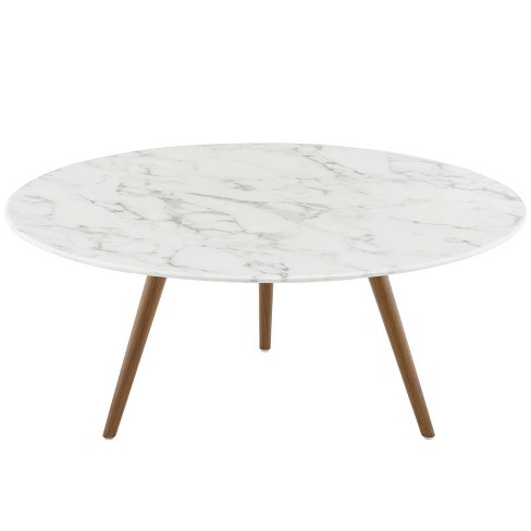 36 Lippa Round Artificial Marble Coffee Table With Tripod Base Walnut White Modway Target
