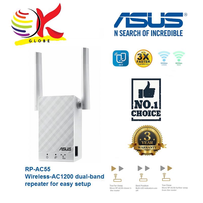 Asus Rp Ac55 Wireless Ac1200 Dual Band Repeater For Easy Setup With Asus Extender App Easy Mode Switching Shopee Malaysia